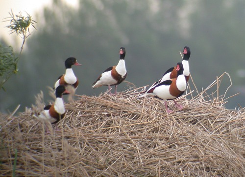 Bergeenden zoeken een nestelplaats in de riethopen,
