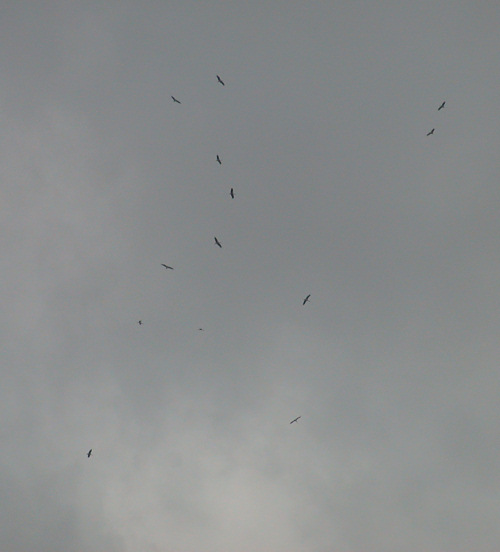 overvliegende Ooievaars gezien. Meestal zijn het een of twee vogels,