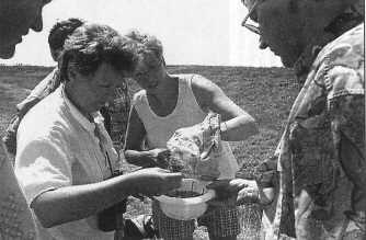 Leidschendam - "je gelooft niet wat je allemaal ziet!" Vol verbazing buigt een groepje natuurliefhebbers zich over een bakje water dat net uit de Starrevaart in Leidschendam is geschept. Het krioelt van het leven. Naast watervlooien, een zoetwaterkreeftje en een platworm sjeest er ook een zwemwants in het bakje rond. Een wants is een bijzonder bezig beestje met grote zwempoten waarmee het zich razendsnel door het water beweegt. Vermoeiend om naar te kijken, zeker bij temperatures die deze zonnige zondagmiddag oplopen tot zo'n 30 graden. De IVN Vereniging voor Natuur en Milieu-educatie verzorgde gisteren een waterexcursie in Vlietland. Corry van Leeuwen, Irene van Wissen en Titia Kiers laten een groepje mensen kennismaken met wat er in en langs het water leeft en groeit. Om bij het startpunt langs de Kniplaan te komen was het zigzaggen door een fietsende menigte maar langs de Starrevaart heerst een aangename rust. Titia Kiers is blij dat het recreatiegebied zo ingedeeld is. "Aan de andere kant heb je de strandjes, de jachthaven en het restaurant, hier kun je rustig rondkijken en genieten". Na een wat aarzelend begin, wordt het enthousiasme voor wat er ontdekt wordt steeds groter. De diertjes zelf worden ook sneller herkend: paddevis, bloedzuigertje, vlokreeftje en verschillende soorten slakjes. Langs de Starrevaart staan veel rietplanten en lisdodden, de grote bruine sigaren die tussen het riet staan. Van Leeuwen: "Deze planten groeien heel snel en vormen in een korte tijd een soort plateau waar dan weer andere plantensoorten op kunnen gedijen. Als je ze hier ongehinderd laat groeien, zit over een aantal jaren de hele plas dicht". EcosysteemDe Starrevaart staat niet in verbinding met een andere waterweg en vormt een ecosysteem op zich. Toen machines nog bezig waren met het afzuigen van het zand streken de eerste watervogels er al neer, zoals lepelaars. "Waar voedsel is, zijn beesten", aldus Van Leeuwen. "je ziet hier vaak wen torenvalkje op een lantarenpaal loeren op een muisje". vult Titia aan. In een smal slootje langs de vaart heerst de waterpest. Irene haast zich te zeggen dat dit geen vreselijke ziekte is maar een dominante waterplant die andere planten verdringt. Een schep uit deze sloot levert dus eerst een hoop groen op. Maar even later komen een waterspinnetje, cen poelslak en zelfs een paar piepkleine baarsjes te voorschijn. Na het natte gedeelte voigt nog een droog stukje Vlietland. Met het koninginnekruid dat als het in bloei staat, veel vlinders aantrekt. Het jacobskruiskruid langs het wandelpad zit vol met rupsen. 'Die hebben felle kleuren en zijn echt niet te eten. Een jonge vogel die het probeert, doet dat maar ?n keer', aldus Corry. 'Toch groeien veel rupsen niet uit tot die mooie zwarte jacobsvlinder met rode stippen. Ze worden gebruikt door sluipwespen als broedpiek voor hun eitjes, dus van binnenuit opgegeten door de wespenlarven". Na dit opwekkende verhaal doemt het volgende gevaar op. Een behoorlijk uit de kluiten gegroeid exemplaar van de beruchte berenklauw, een inheemse plant. 'Uit de buurt blijven is het beste'. waarschuwt Titia. 'En mocht je er toch tegenaan lopen, dat deel van je lijf uit de zon houden want anders gaat het vreselijk branden". Na een boeiende ontdekkingstocht doemt de uitkijktoren bij de Kniplaan op, het eindpunt van deze waterexcursie. Als straks deze nieuwe brug over de Vliet klaar is, wordt dit mooie stukje natuur nog makkelijker toegankelijk. Uit: Haagsche Courant, 12 juli 1999 |