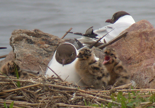 Alle 11 paren Kluten zaten op het schelpeneiland. Tussen de broeders werd een bekende geringde vogel teruggezien. De "Holwerd"-kluut (in 1993 in Holwerd geringd) was voor het vierde opeenvolgende jaar aanwezig en heeft in 2005 op het schelpeneiland 4 eieren uitgebroed. De 61 paar Visdieven hebben deels op het schelpeneiland gebroed en deels op de droogvallende slikplaat. Opvallend is de enorme toename van het aantal Rietzangers. In 2005 broedden er 40 paar, en toename van 30% ten opzichte van voorgaande jaren. Dit kan te maken hebben met de verruiging in het droge rietland, waar door achterstallig onderhoud erg veel opslag van wilgen en onkruid is ontstaan. Ook de Sprinkhaanzanger profiteerde hiervan, en kwam met 3 paar tot broeden. Als een van de weinige rietzangers ging de Bosrietzanger in 2005 achteruit. Dit is vreemd, want ook dit is een soort die van verruiging, met name brandnetel. In 2005 begonnen de schaarse percelen nat riet langs de oostzijde en de Kniplaan voor het eerst flink bevolkt te raken met broedvogels. Nadat aan de noordkant van de Kniplaan al enige jaren de Snor met enkele paren tot broeden kwam, was de soort ook in de Vogelplas Starrevaart aanwezig met 2 paar. De Blauwborst bleef met 8 paar op het hetzelfde hoge niveau. Hetzelfde geldt voor de rietgors met 26 paar. Bij de kijkhut heeft een paar Baardmannen gebroed, op 8 juni 2005 zijn hier 4 jongen gezien.