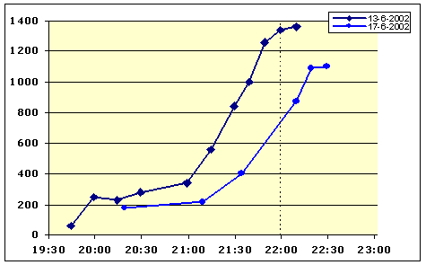 Aantal Grutto's op de slaapplaats, 13 en 17-6-2002