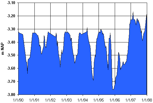 Het waterpeil is kunstmatig bij te regelen. Vanuit de Meeslouwerplas is inlaat van water in de Vogelplas mogelijk. Uitlaat kan door een verstelbare overstort. Het is echter zaak om hier spaarzaam mee om te gaan. Bij het neerslagoverschot gaat het om relatief schoon water. Door hier zuinig mee te zijn blijft het water in de Vogelplas ook betrekkelijk schoon. Hierdoor krijgt hogere-waterplantengroei meer kans en algenbloei en botulisme hopelijk veel minder. Door het neerslagoverschot in het winterhalfjaar krijgen de rietvelden voldoende water om verruiging daarvan te voorkomen. De bodem van de plas komt voldoende diep te liggen om het dichtgroeien van de plas met riet te voorkomen. Door het verdampingsoverschot in het zomerhalfjaar komt de slikplaat in de plas in de nazomer en het begin van de herfst net plas en dras te staan. Hiervan kunnen vooral de steltlopers dan van profiteren. Aan een laag waterpeil in de nazomer is wel een risico verbonden. Het water kan dan zeer warm zijn, waarmee er een reeel gevaar is voor het ontstaan van botulisme. Iets om scherp in de gaten te houden (en dat gebeurt ook!). Mogelijk kan dit ook een reden zijn om het water in de Vogelplas dan toch maar weer op te zetten. Anders wordt de slikplaat immers een 'dodelijke val' (dode vogels, maden, vogels die daarop afkomen, nog meer dode vogels, enz.)! |
